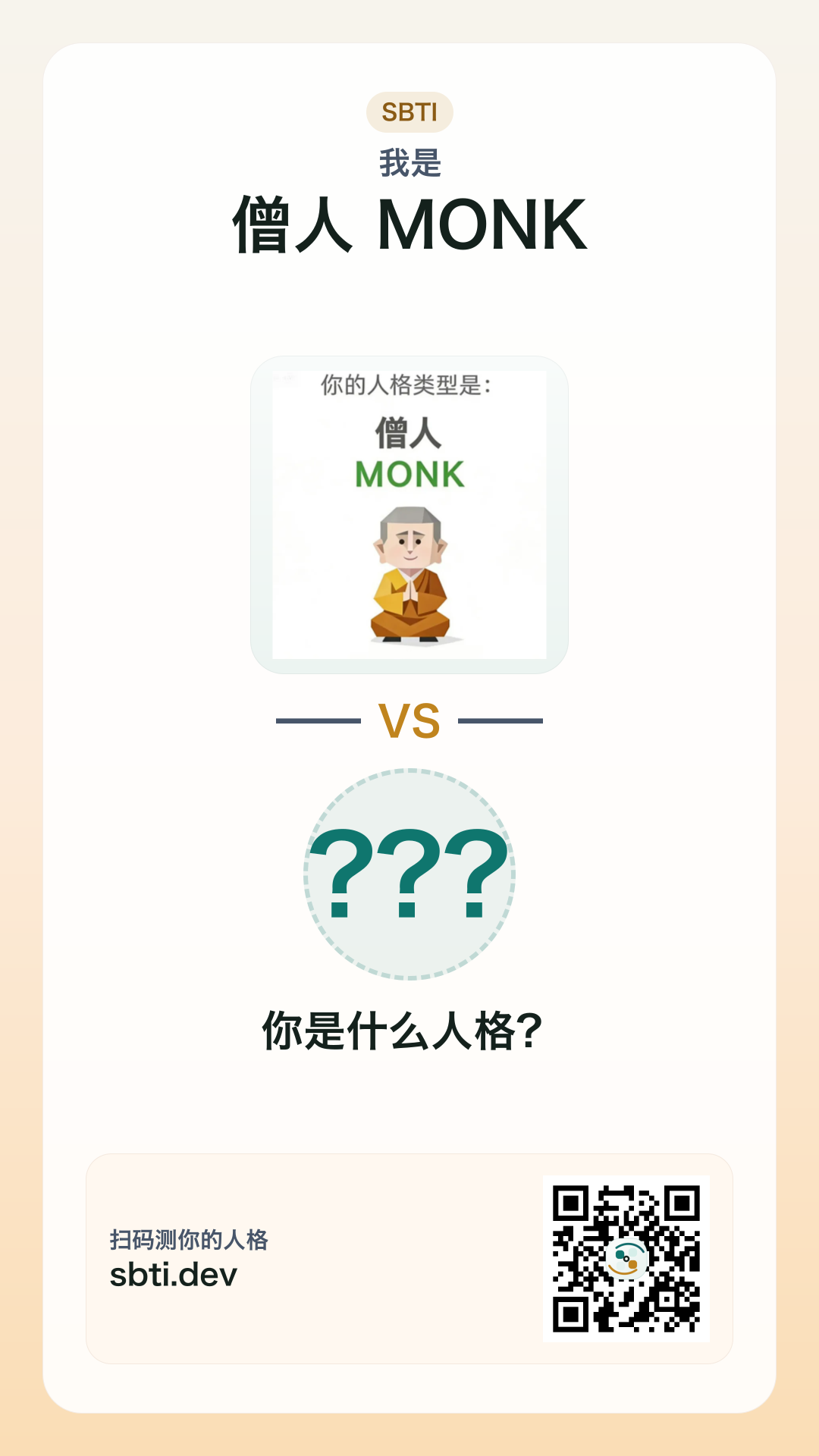 你是【僧人 MONK】,你朋友呢?发给 ta 测完,回来看看你俩谁更离谱。