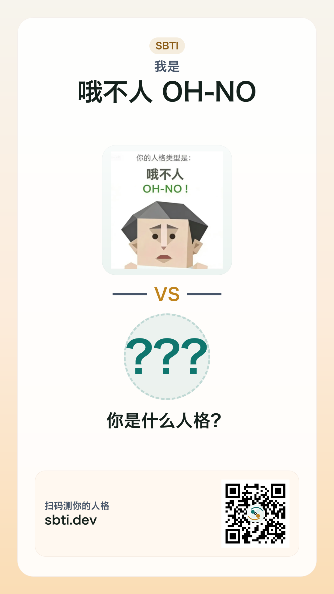 你是【哦不人 OH-NO】,你朋友呢?发给 ta 测完,回来看看你俩谁更离谱。
