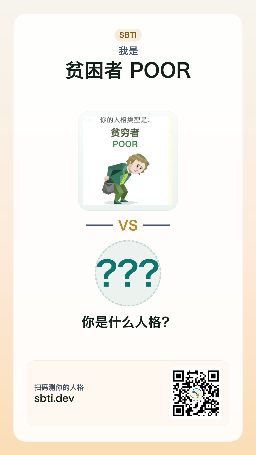 你是【贫困者 POOR】,你朋友呢?发给 ta 测完,回来看看你俩谁更离谱。